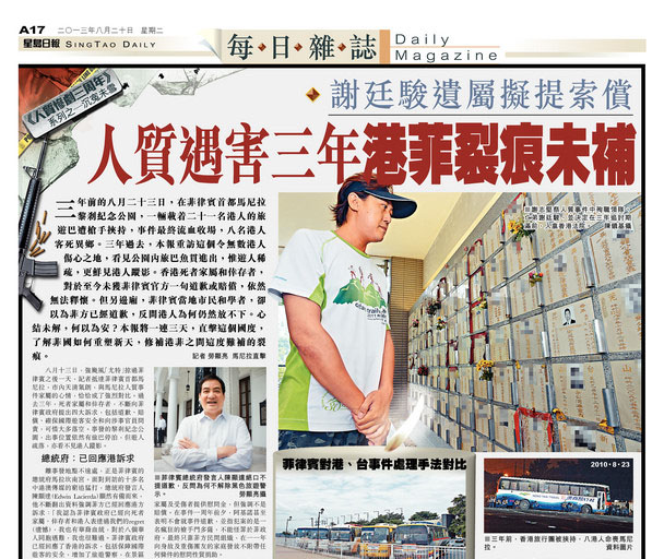 星島日報 A17 | 每日雜誌 | 《人質慘劇三周年》系列之一:沉冤未雪 2013-08-20