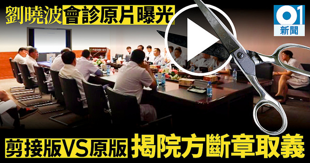但據《香港01》記者找到微信流傳的相對完整版本,顯示原來剪輯版刪走了中國專家組長毛一雷醫生問德國醫生Markus W Büchler,劉能否承受長途飛行,德醫生回答中國具備醫療專機運送劉曉波出國,更強調他出國是人道問題,「我們願意把他接走。」