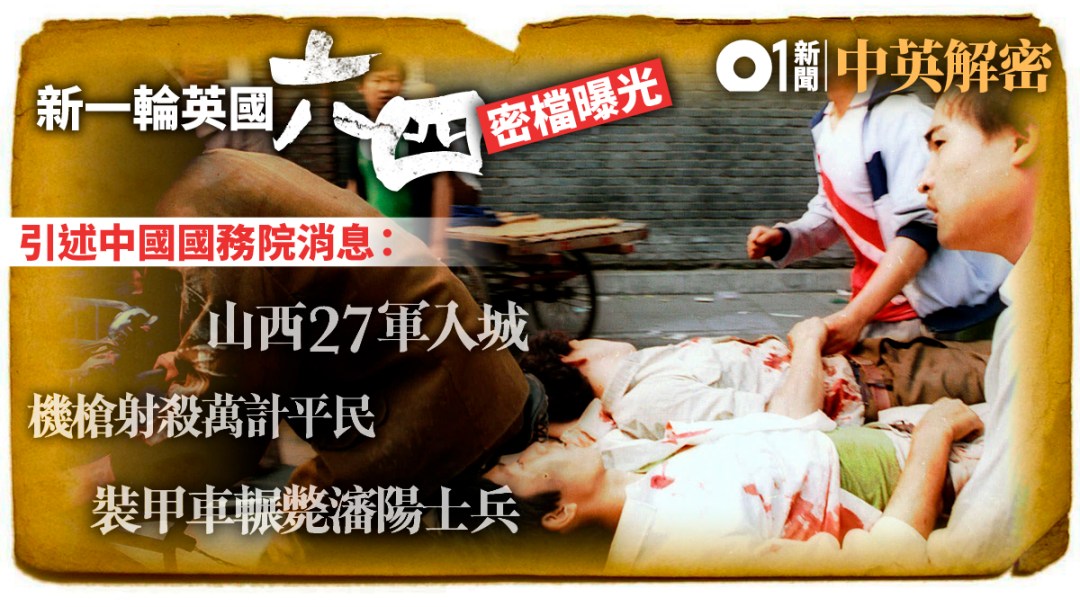 《香港01》記者在倫敦的英國檔案館,查閱1989年數千頁解密檔案,這些檔案包括4月15日胡耀邦逝世後,一直到5月20日北京戒嚴、6月4日血腥清場後,英國的情報、對北京局勢的評估及解放軍的調動,亦有六四後中英在起草基本法時的角力。