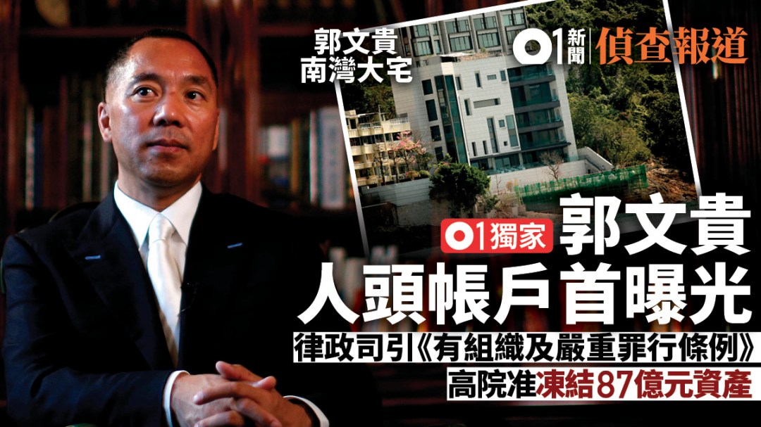 流亡美國的中國內地富豪郭文貴,常常在網上直播,語出驚人,他持有香港身份證和特區護照。《香港01》發現,今年10月高等法院批准律政司引用《有組織及嚴重罪行條例》,凍結他在香港的現金、存款、股票和物業,合共87億港元的資產。