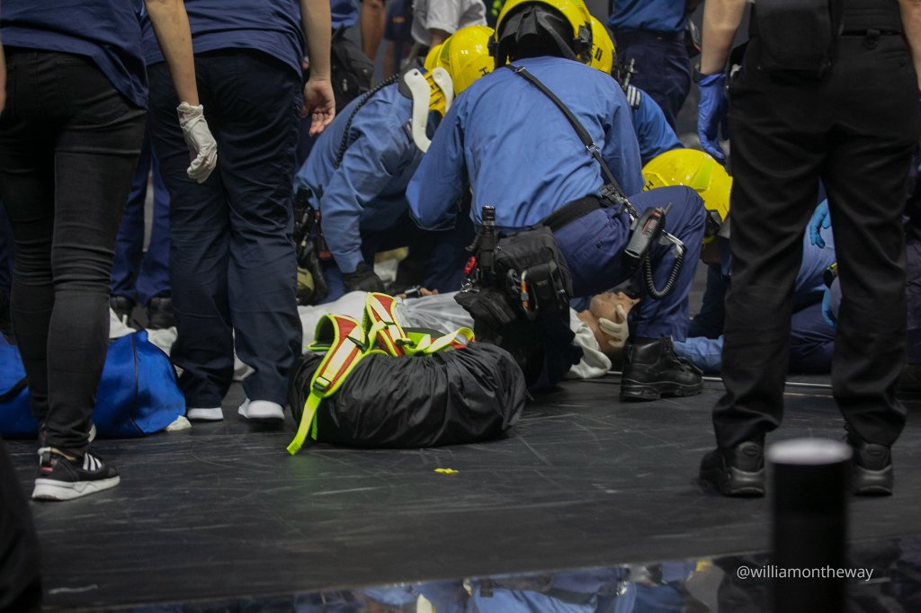 事發後,正跟隨工作人員指示離場,亦表明記者身份,但有康文署的職員阻擋鏡頭,不讓我在遠距離拍攝救援的情況。幸好還有市民幫口,指出不能阻礙記者採訪,以保障公眾知情權。
